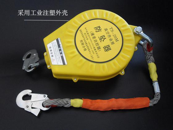防墜器型號為TS-X,X表示活動范圍,對應(yīng)于技術(shù)參數(shù)表中的5M、20M等。防墜器鎖止臨界速度可達(dá)1m/s,工作載荷為150kg,鎖止距離不超過0.2m,整體破壞負(fù)荷不低于8900n。為常規(guī)款的電力工業(yè)防墜器,又名電力高處作業(yè)防墜器,屬于三代速差自控器。